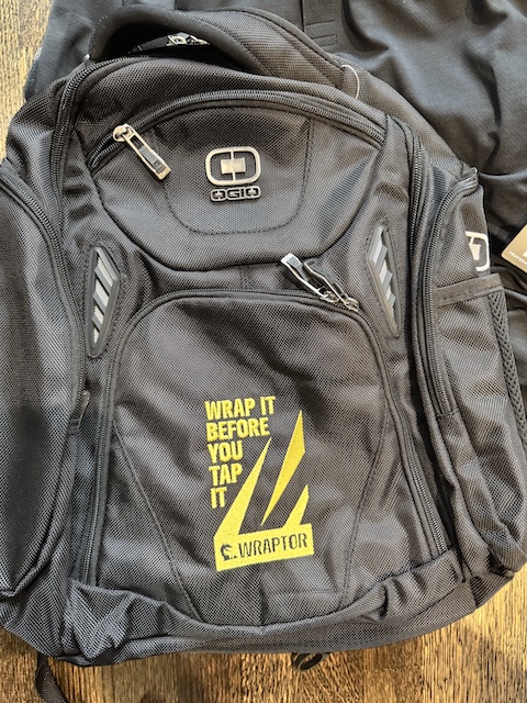 We solved this problem for Wraptor, a company whose product was still in development when their CEO attended a major industry event in Las Vegas. He wasn't there to sell, he was there to learn, validate, and start building awareness. We created a branded backpack with the company logo and a tagline embroidered on it. The colors were intentional: high-visibility yellow and green, tied to the construction industry Wraptor serves.