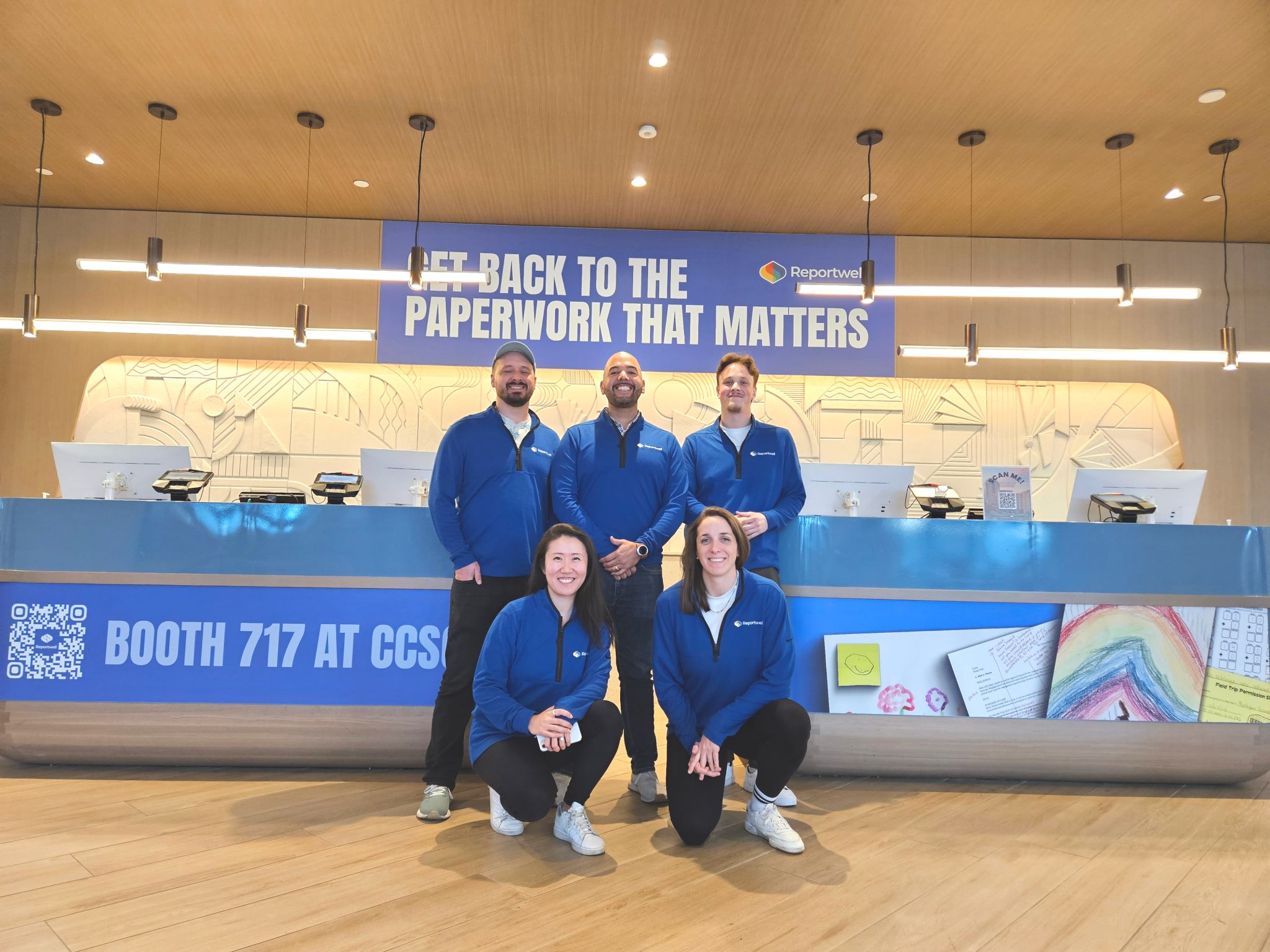 We placed elevator clings and welcome signage in the lobby of the hotel where the majority of conference attendees were staying. The creative was bright, bold, and led with an emotional message: stop doing paperwork and get back to the real work that matters. The powerful message stopped people in their tracks. It made them curious. And when they got to the trade show floor and spotted Reportwell's bright blue booth with that same message, it was the brand they'd already been thinking about.