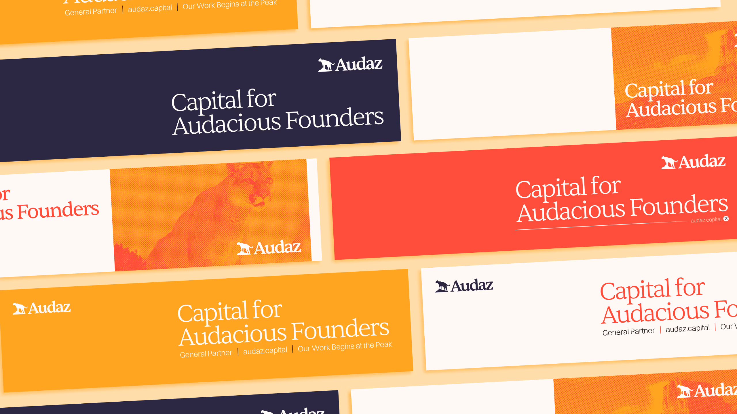 Audaz’s existing brand include a lion, meant to represent the power and audacity behind the bold founders the firm backed. We swapped the lion for a mountain lion — more respective of the region — and perched the mountain lion up high, representing a climb already made and a future climb to come.